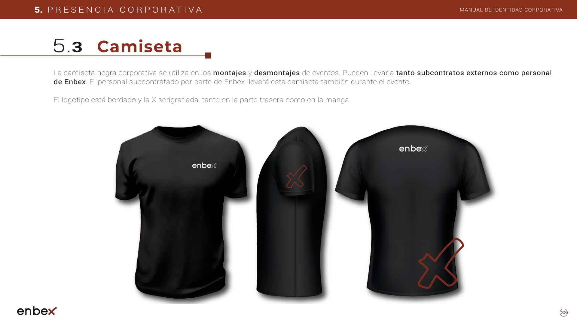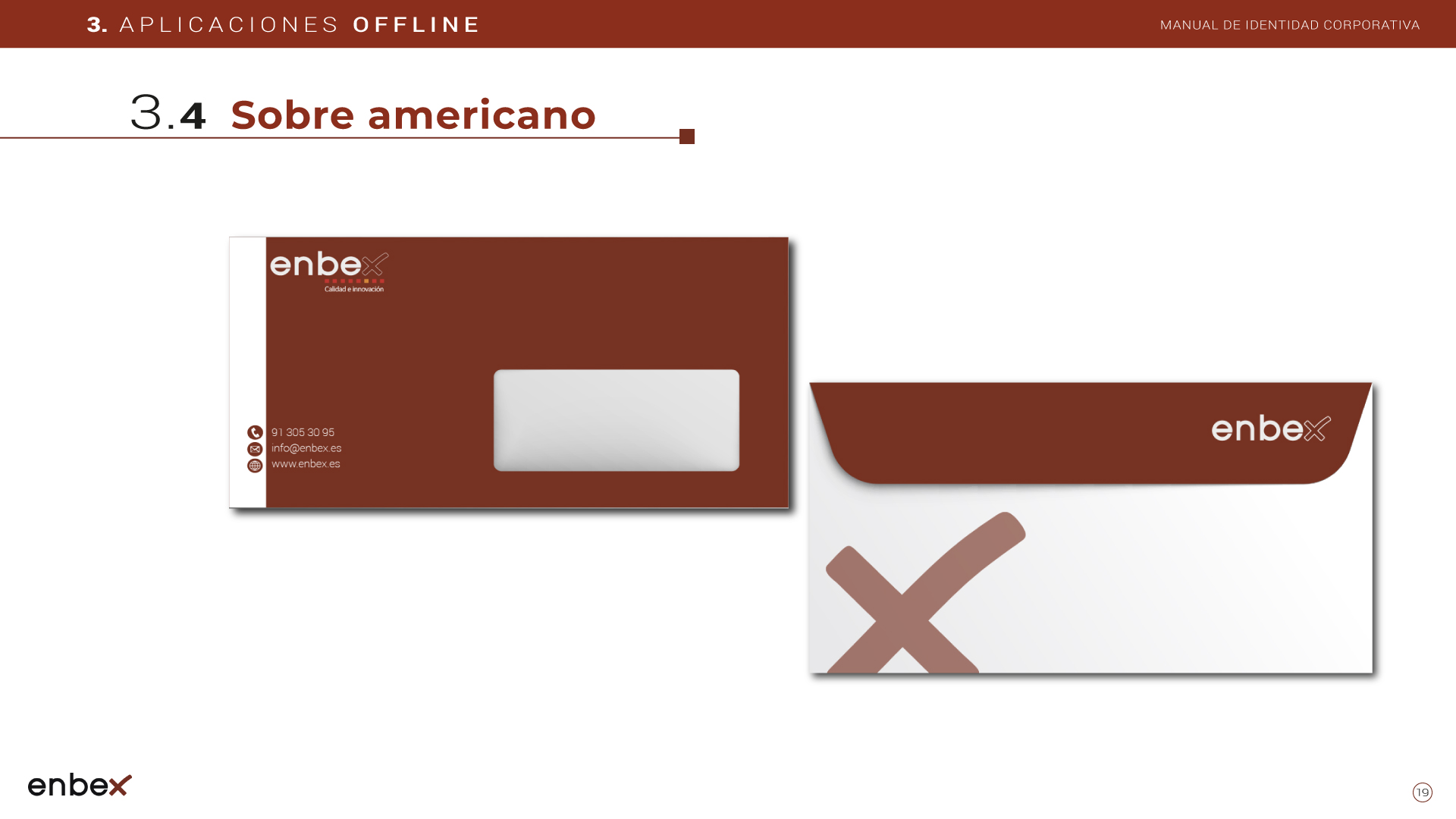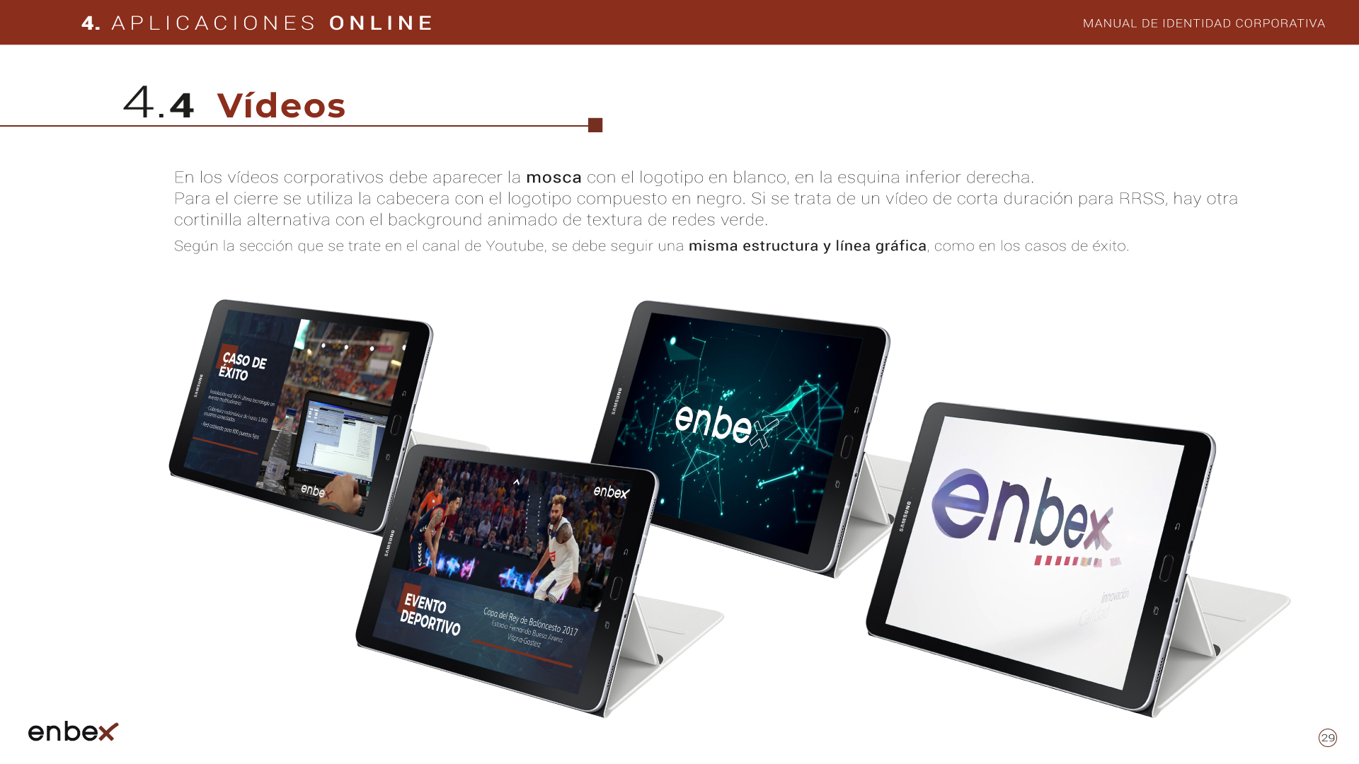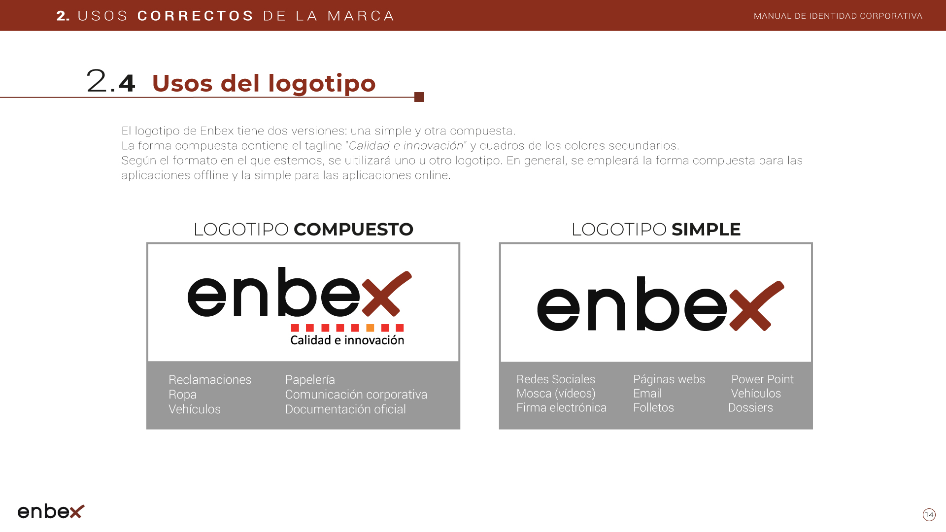 Diseño, maquetación y edición del primer manual de Identidad Corporativa de Enbex. Elaboración completa de todo el contenido, así como todas y cada una de las aplicaciones de papelería (carpetas, folio, sobres, etc.) y aplicaciones online. En este manual no llegaron a incluirse los polos corporativos de Broadcast, pero están individuales en este portfolio.