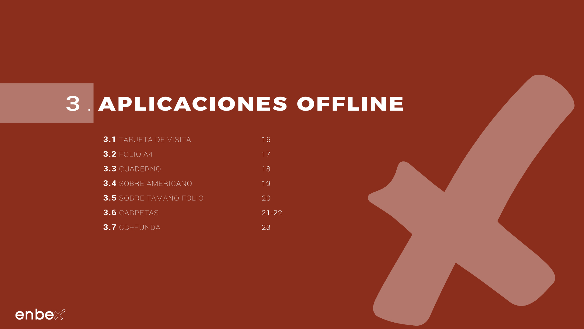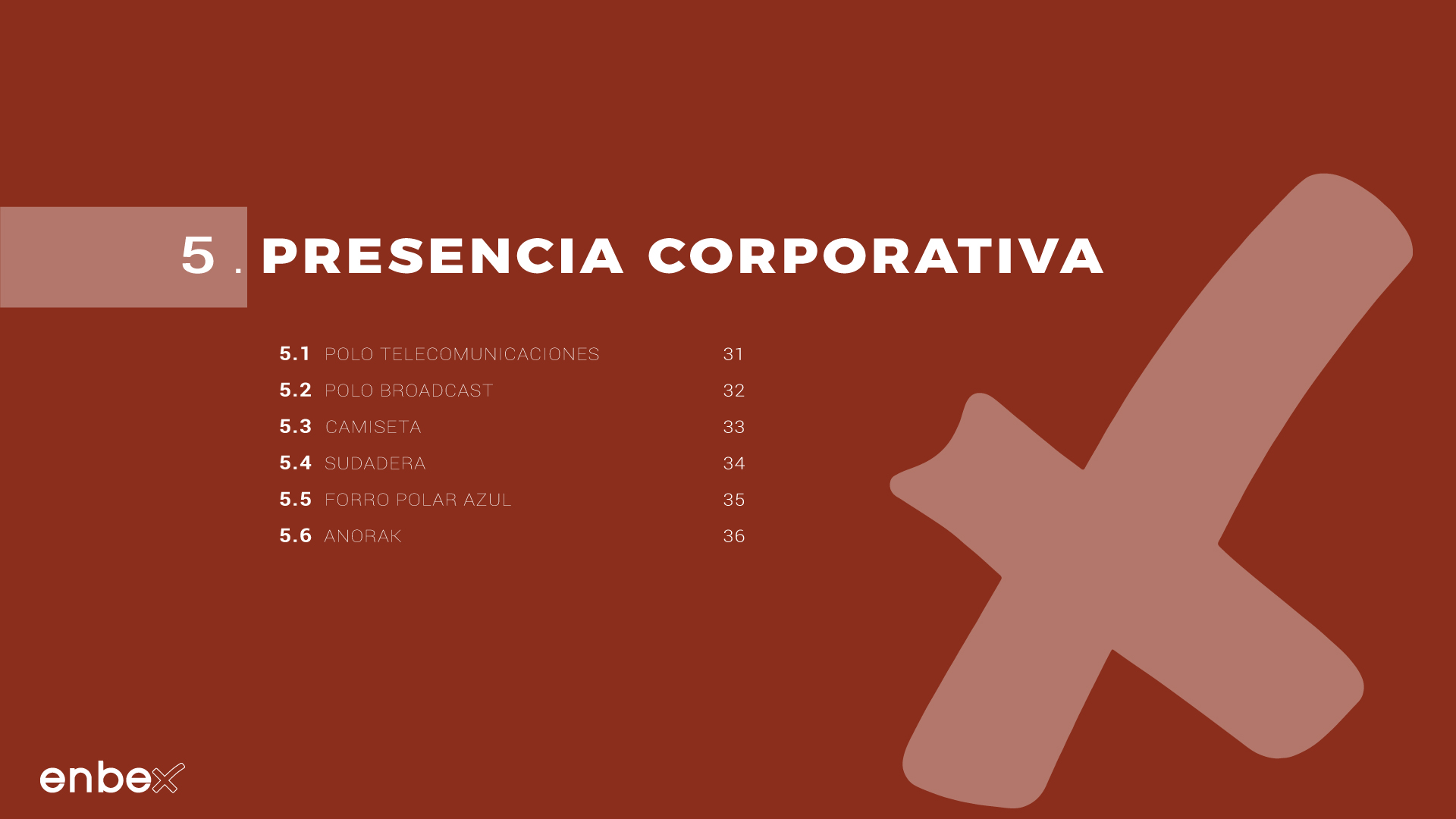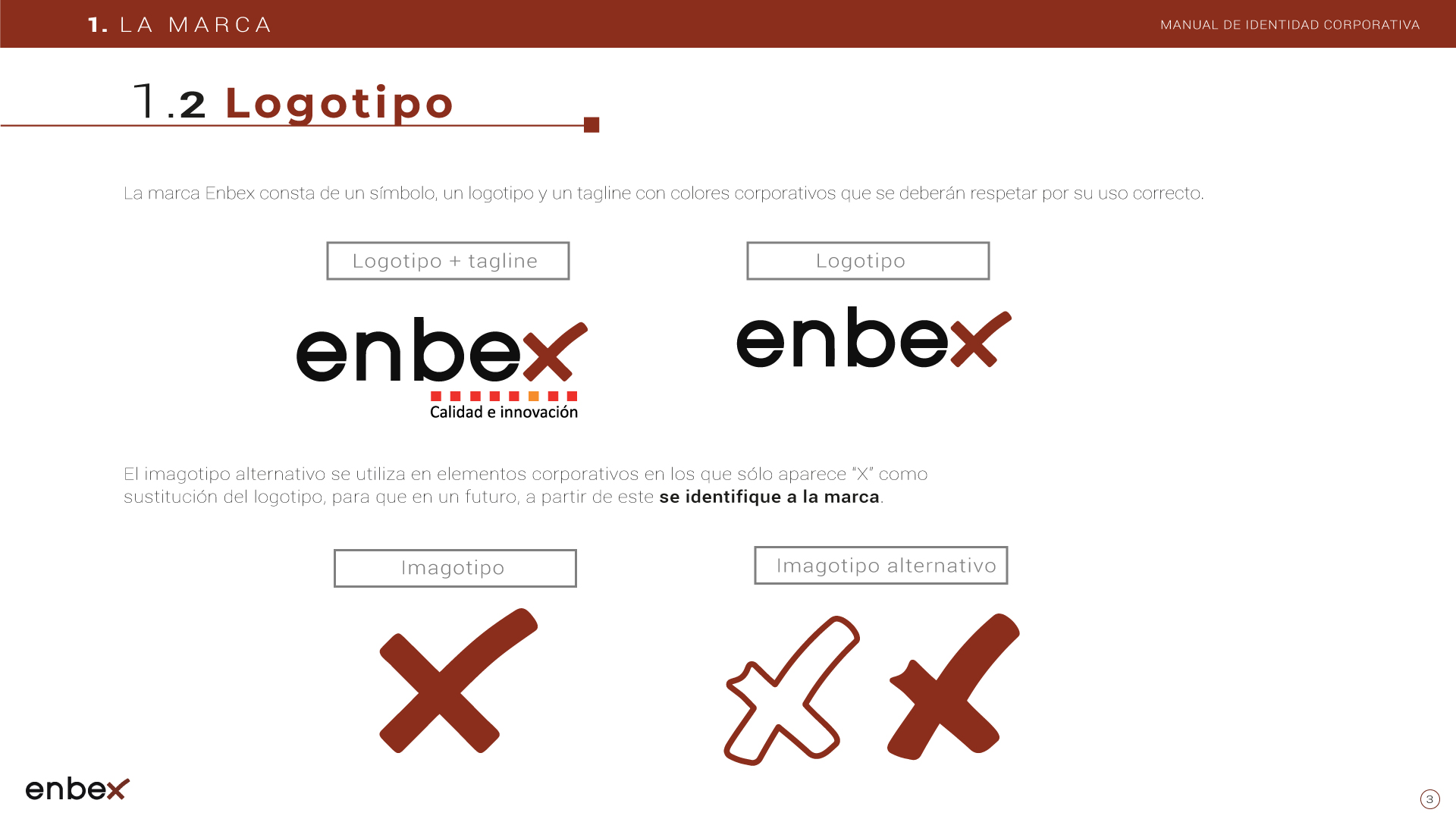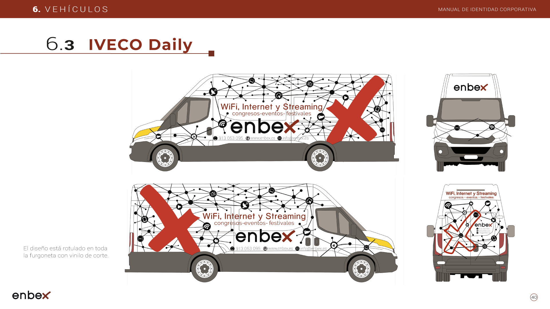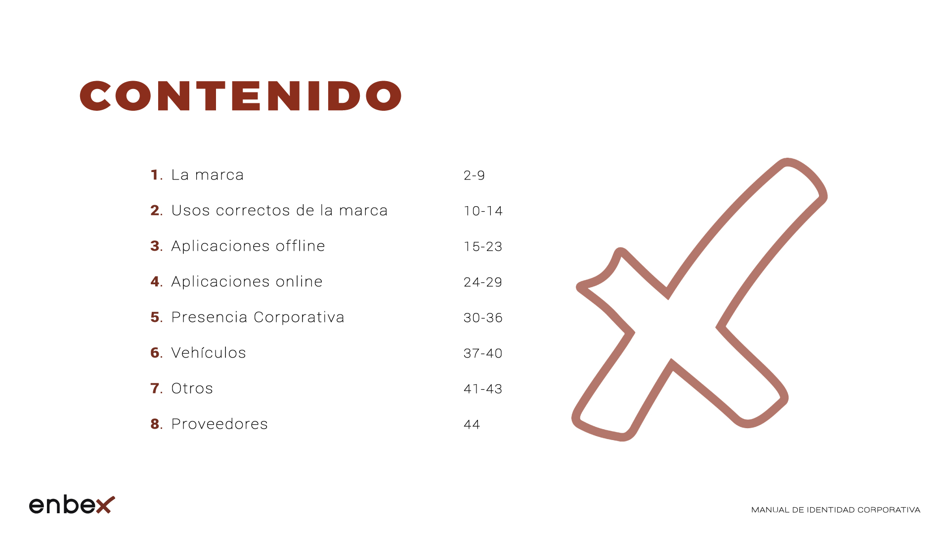 Diseño, maquetación y edición del primer manual de Identidad Corporativa de Enbex. Elaboración completa de todo el contenido, así como todas y cada una de las aplicaciones de papelería (carpetas, folio, sobres, etc.) y aplicaciones online. En este manual no llegaron a incluirse los polos corporativos de Broadcast, pero están individuales en este portfolio.