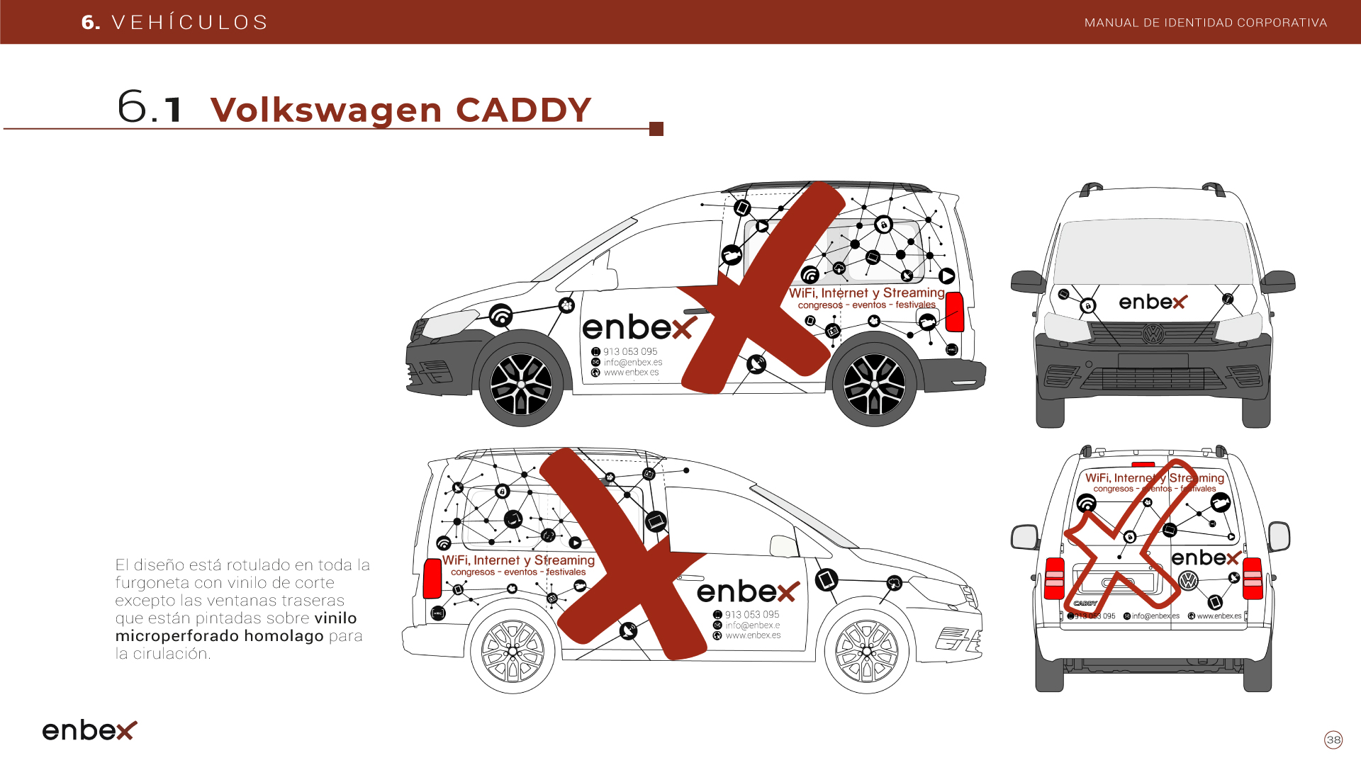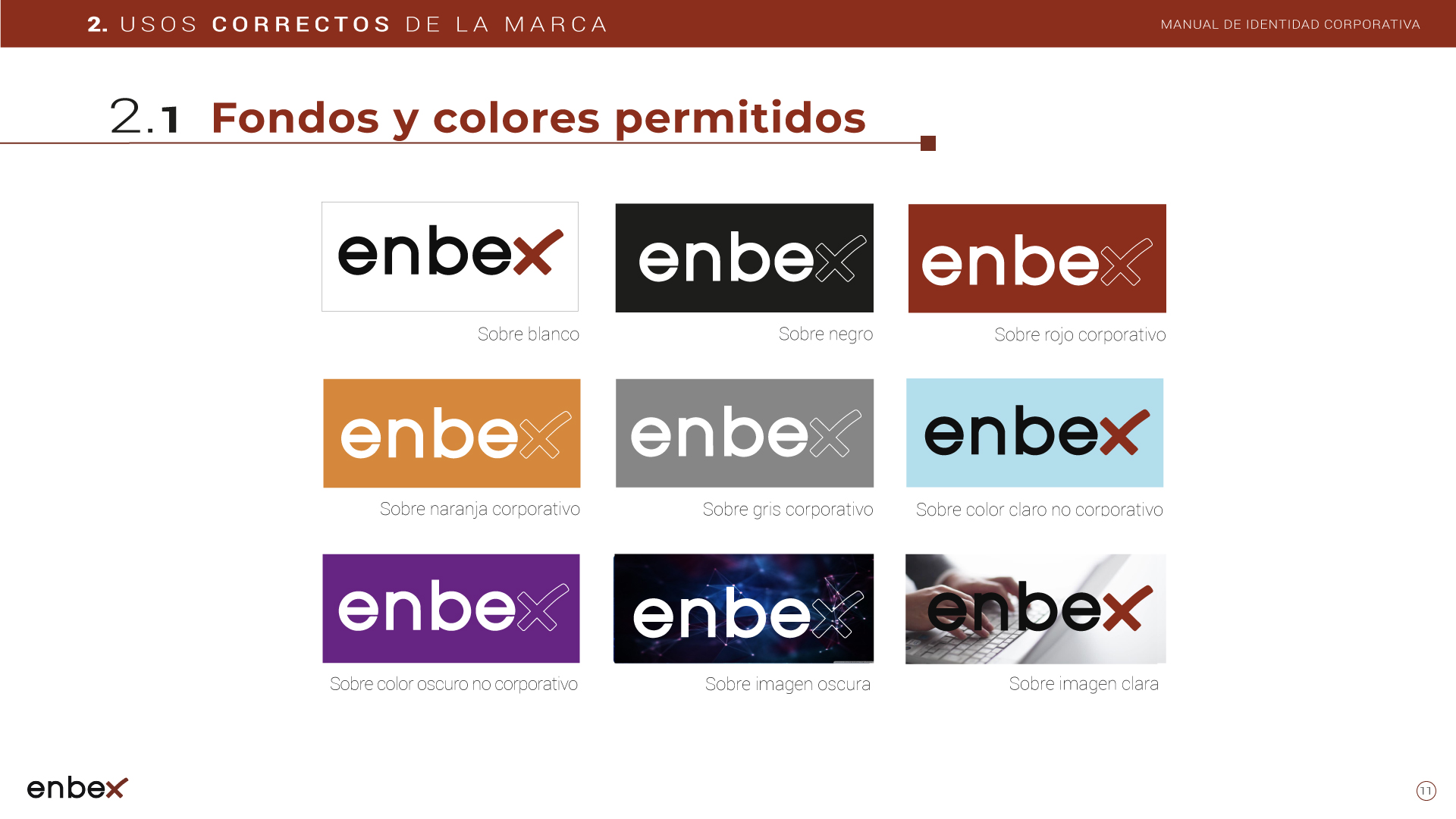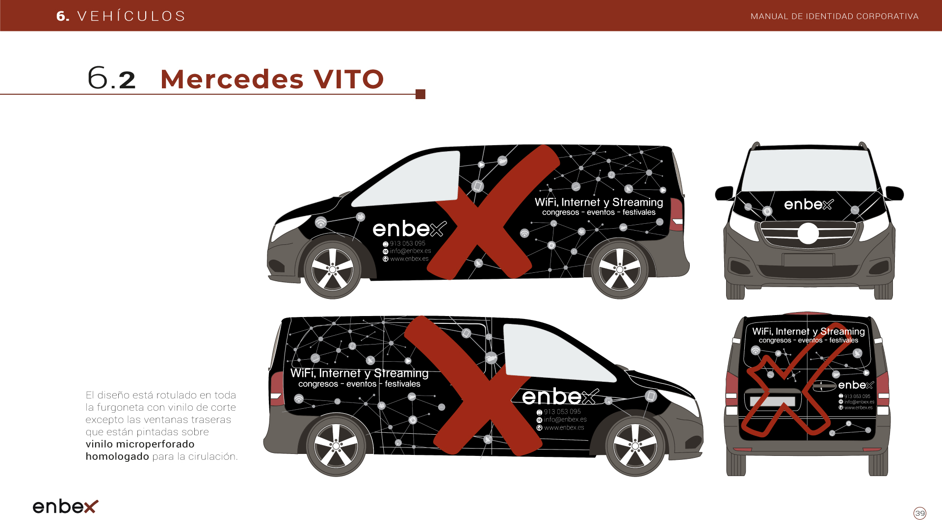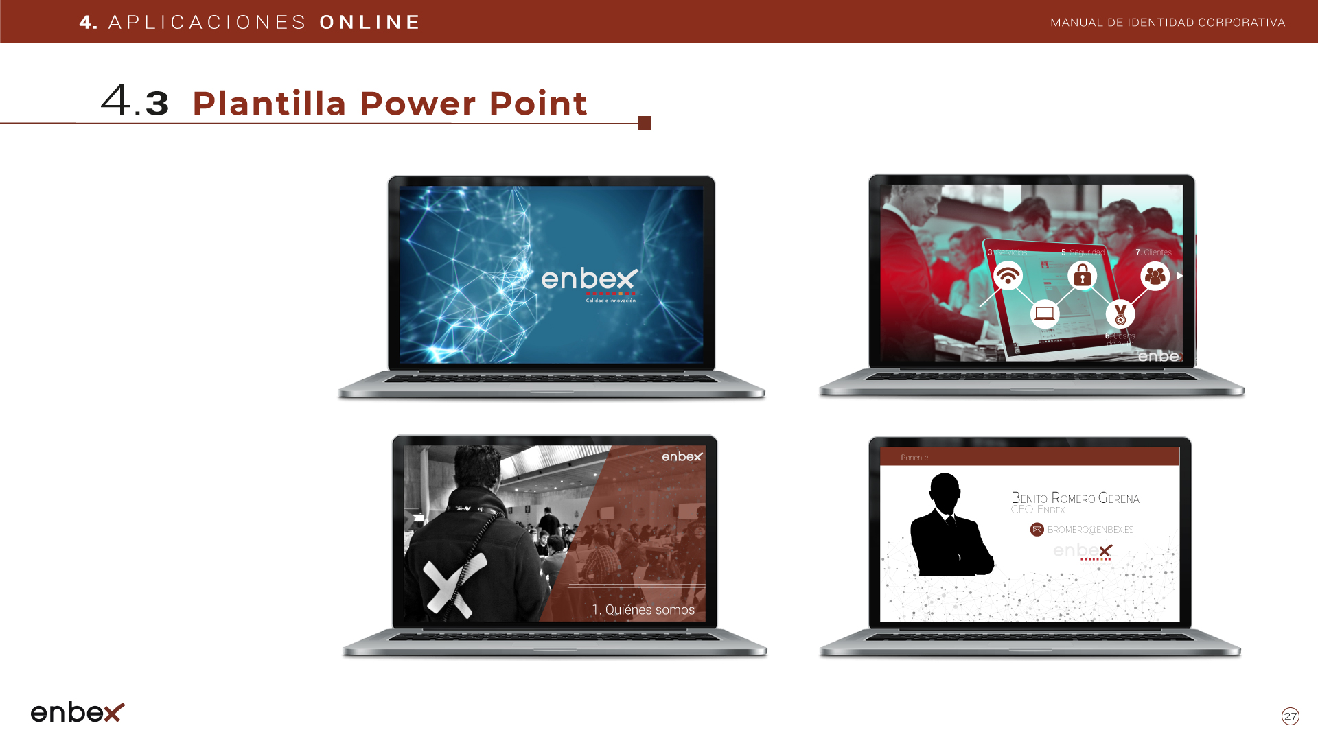 Diseño, maquetación y edición del primer manual de Identidad Corporativa de Enbex. Elaboración completa de todo el contenido, así como todas y cada una de las aplicaciones de papelería (carpetas, folio, sobres, etc.) y aplicaciones online. En este manual no llegaron a incluirse los polos corporativos de Broadcast, pero están individuales en este portfolio.
