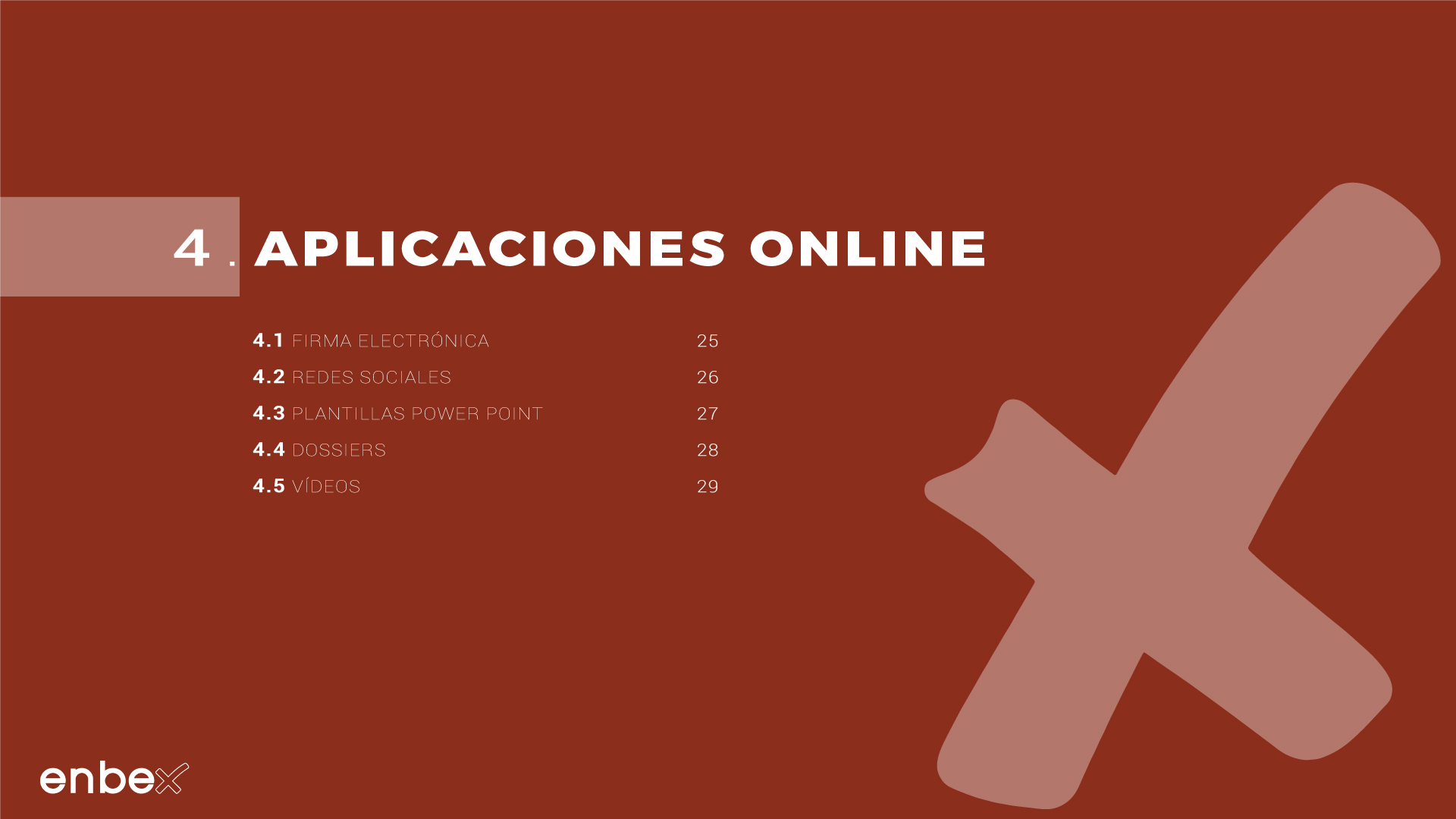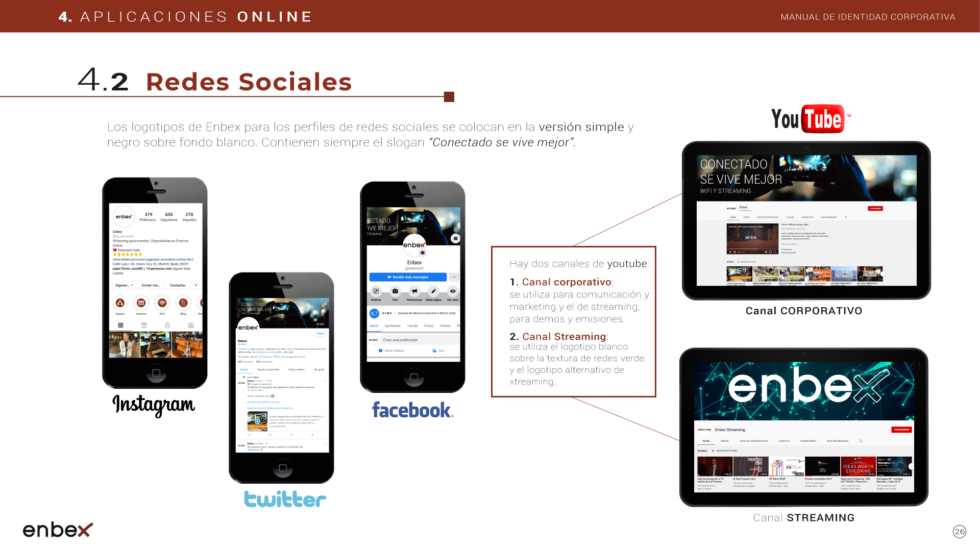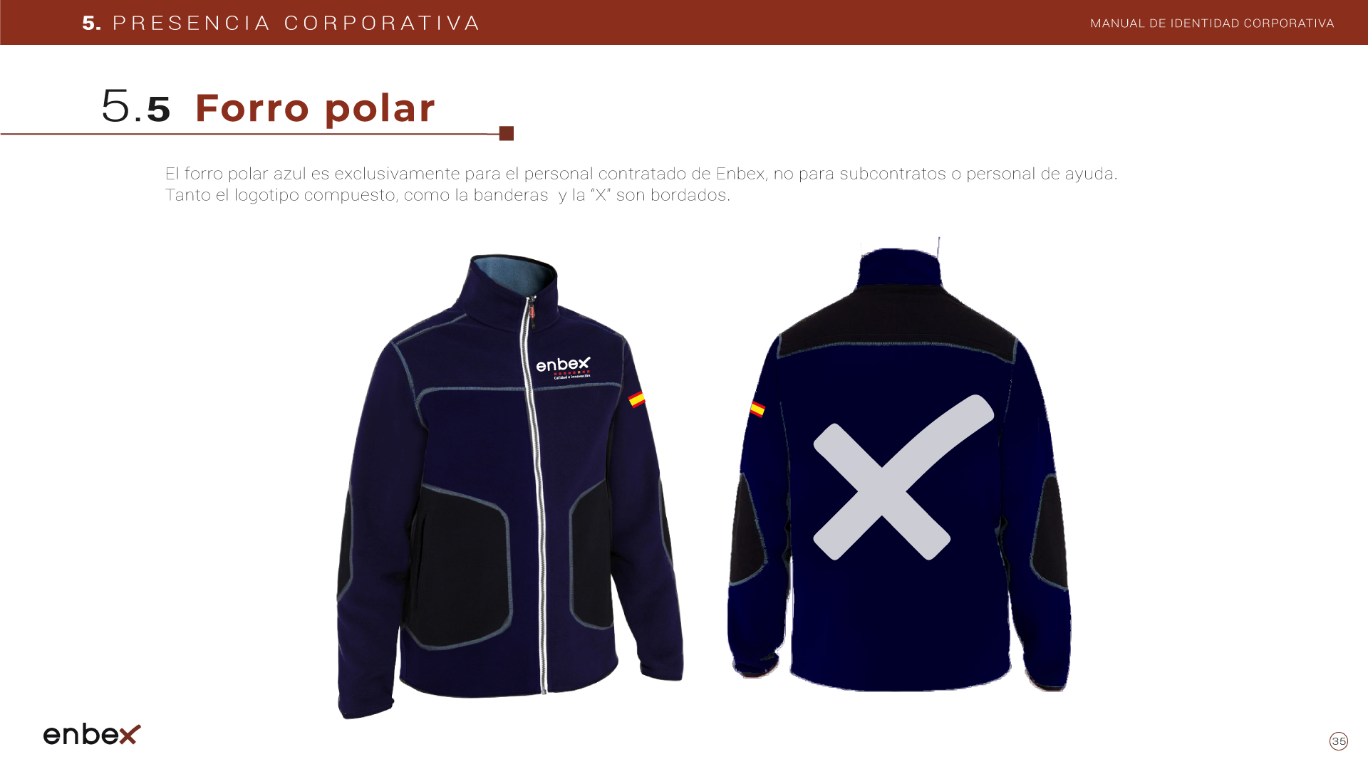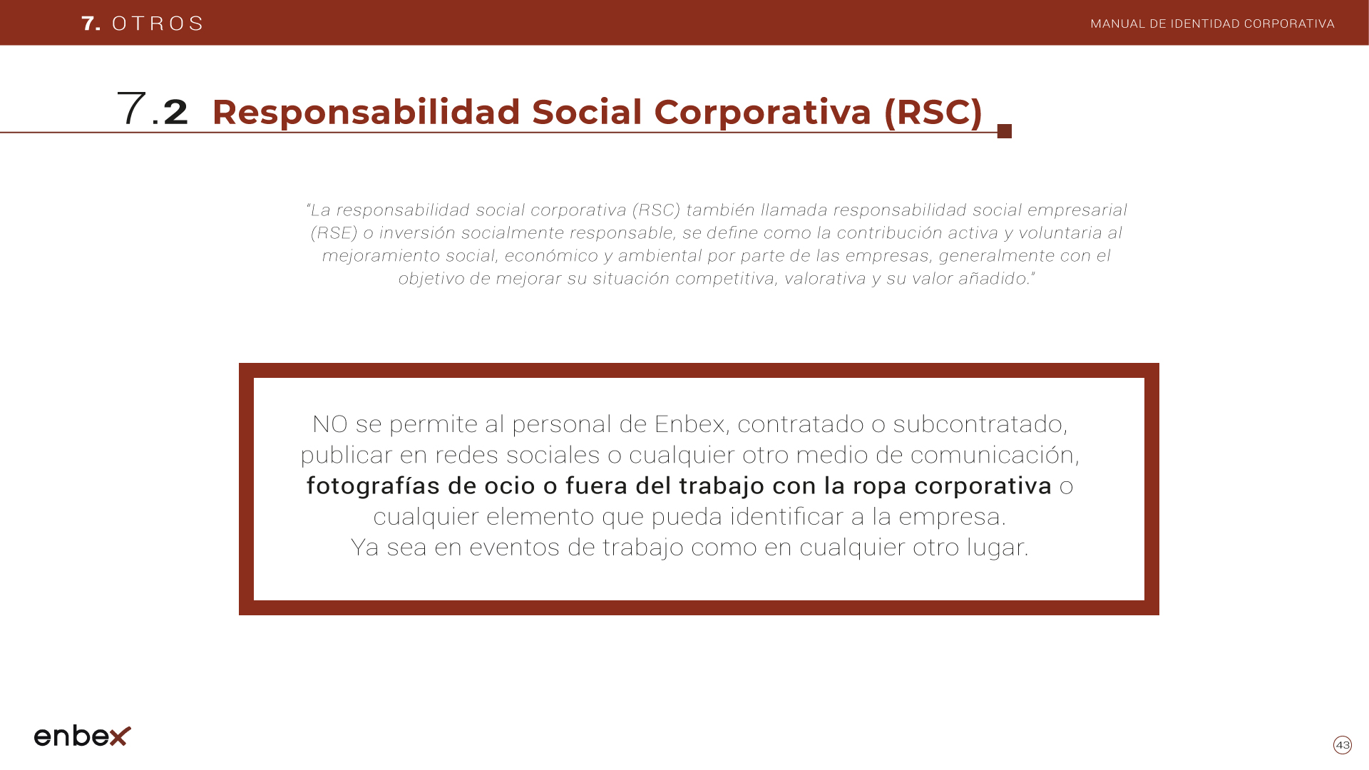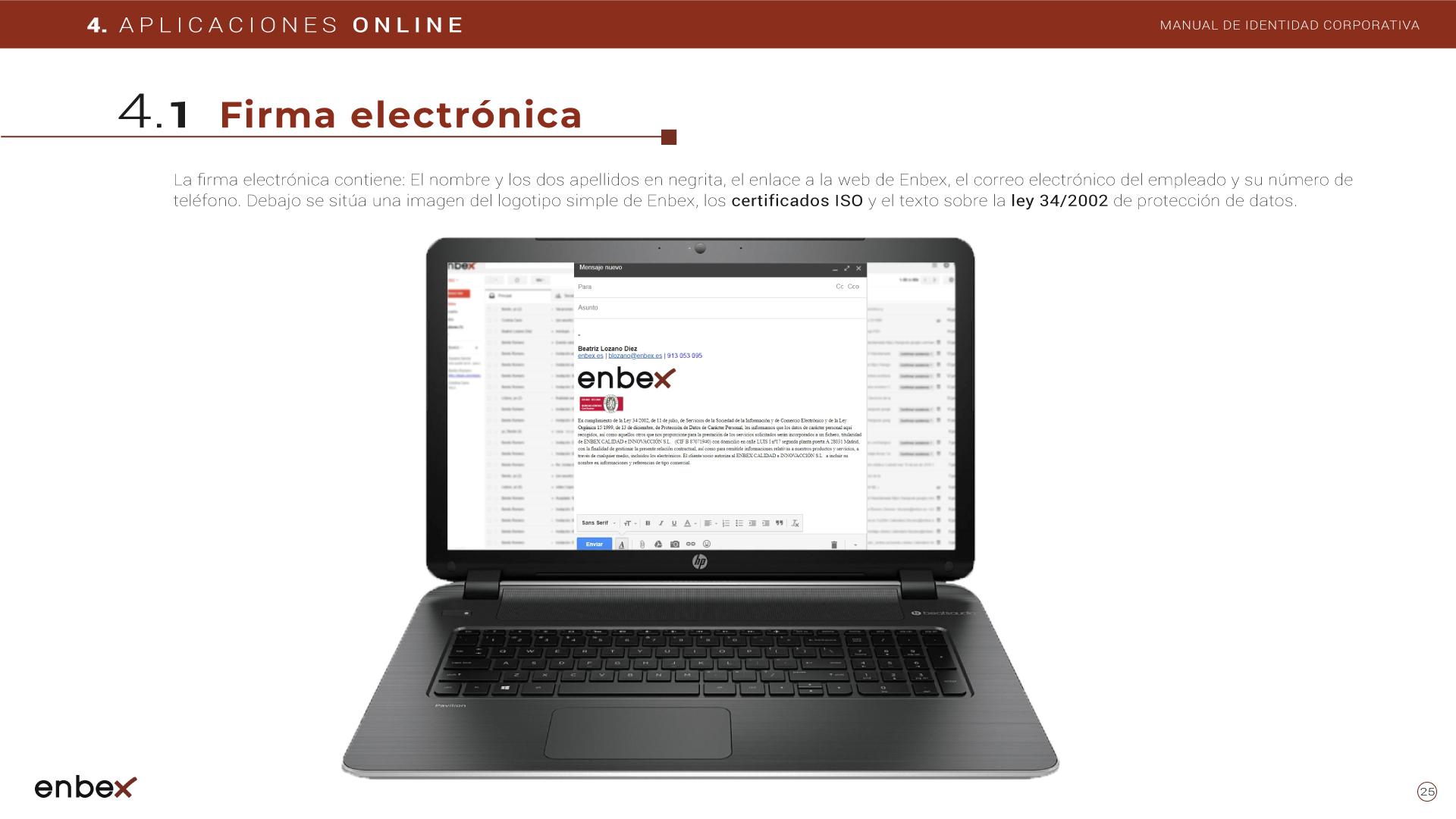 Diseño, maquetación y edición del primer manual de Identidad Corporativa de Enbex. Elaboración completa de todo el contenido, así como todas y cada una de las aplicaciones de papelería (carpetas, folio, sobres, etc.) y aplicaciones online. En este manual no llegaron a incluirse los polos corporativos de Broadcast, pero están individuales en este portfolio.