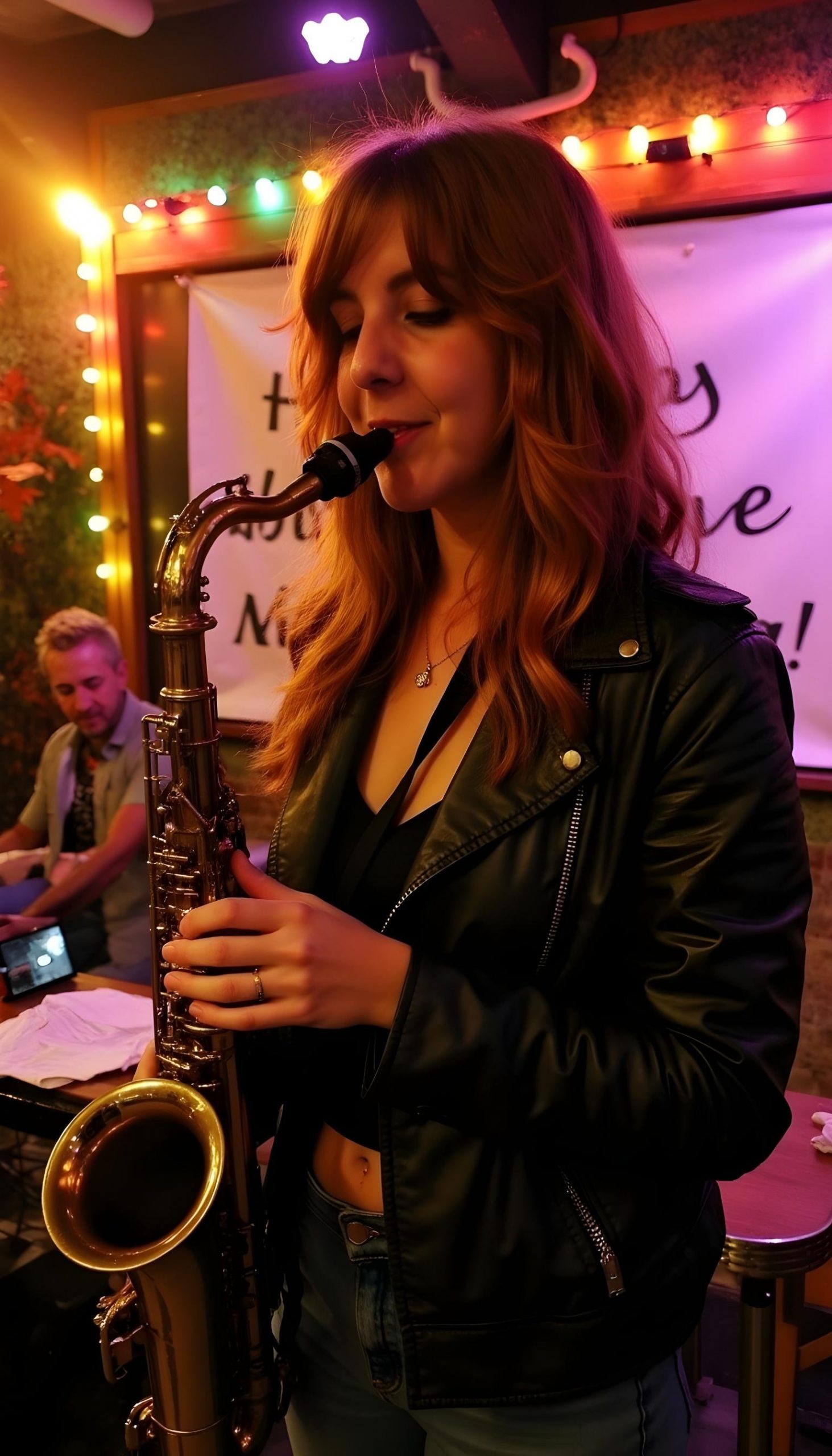 Fotografía en concierto de jazz ultrarealista de Marina Rodríguez, utilizando ingeniería del prompt mediante herramientas de la IA de Pikaso, en la suite de Freepik Premium (modo Flux 1.0).